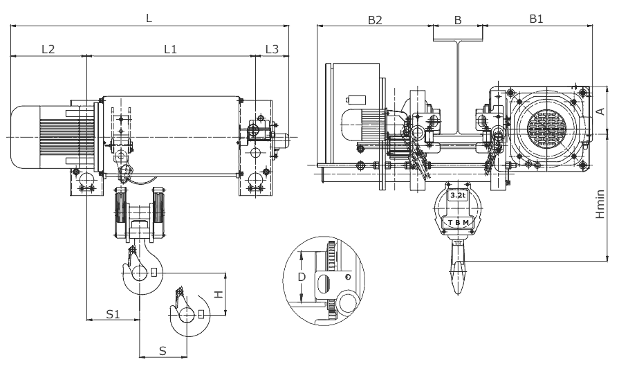 *** Под заказ возможно исполнение талей (тельферов) с большей высотой подъема